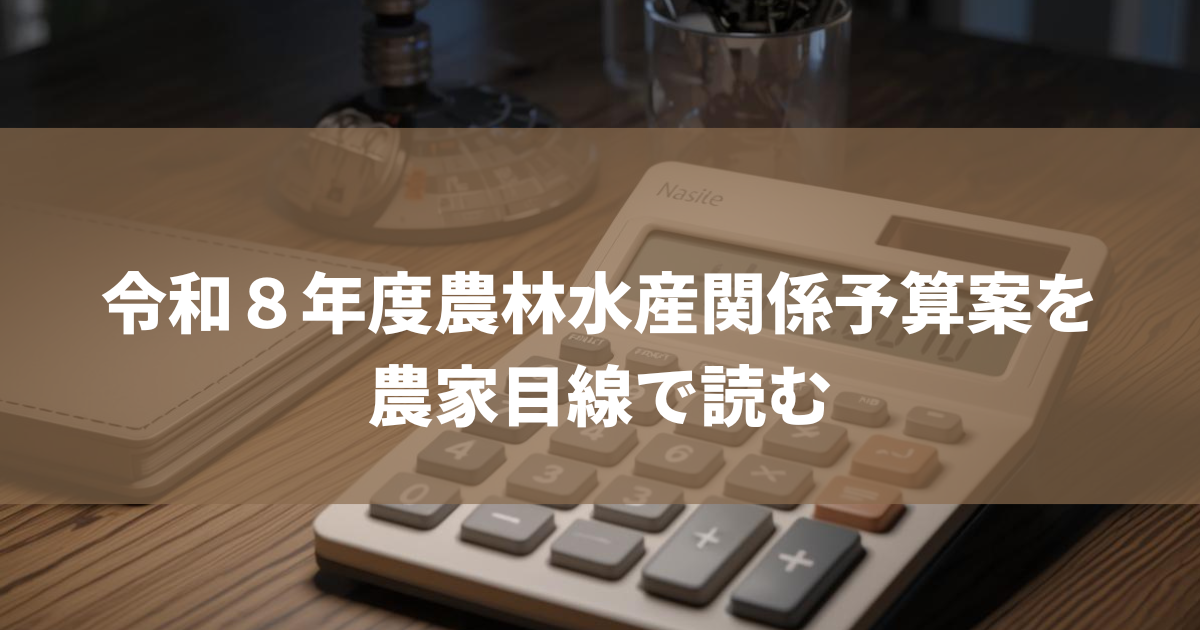 その判断をするためにも、予算の中身を大づかみに理解しておくことは、農業経営にとって重要だと考えます。この記事では、農家目線で、できるだけ分かりやすく令和8年度の農水省予算案を見ていきます。