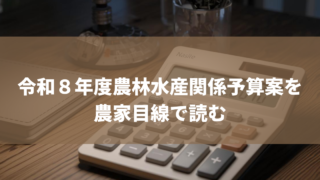 昨年末、政府は令和8年度(2026年度)予算案を閣議決定しました。農林水産省関係予算についても、「令和8年度農林水産関係予算概算決定の概要」といった資料が公表されていますが、実際に目を通してみると、たくさんの制度名と数字が並び、 そ...